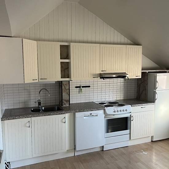 Central belägen fastighet i Dalsjöfors finns denna 3a om ca 65 kvm på våning 3 av 3. Det är genomgående vita väggar samt gråa laminatgolv i trä likt bilderna. Öppen planlösning mellan kök och vardagsrum. Köket utrustat med spishäll, ugn, kyl/frys, mikro och diskmaskin. Stort badrum inrett med tvättställ, kommod, wc, dusch. Tvättmaskin/torkmaskin. Två stycken sovrum med plats för säng, sängmöbler, förvaring och annat möblemang. Plats för att parkera bilen precis utanför fastigheten. Förråd till lägenheten finns i huset. Varmhyra dv...