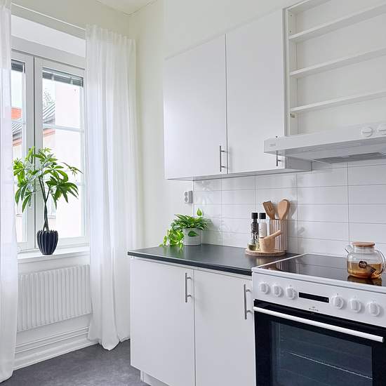Välkommen till Tegelbruksgatan 9 och denna vackra 3,5 rum och kök på nedre plan. Lägenheten på 128 kvadrat är rymlig och ljus med vacker fiskbensparkett. När du kommer in i hallen har du köket direkt till höger, modernt utrustat, vita luckor och fönster med utsikt mot innergården. Från köket kommer du till det lilla sovrummet med tillhörande klädkammare för praktisk förvaring. I hallen finns en liten wc och även här garderober. Fina skjutdörrar in till vardagsrummet är en vacker detalj, härifrån kommer du till ett större sovrum även här fin...