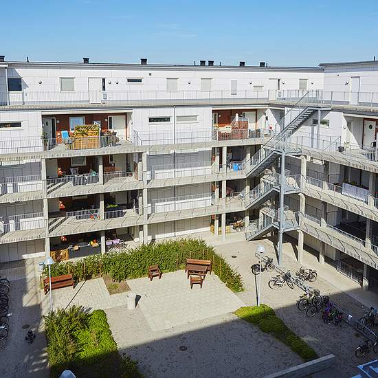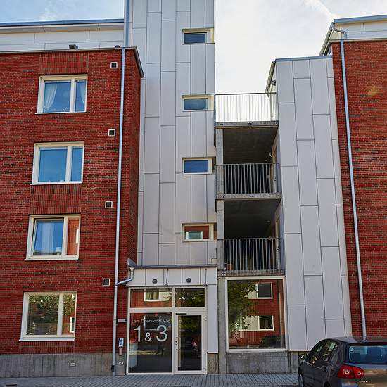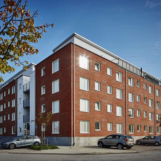 Centralt i Eslöv, med några minuters gångavstånd till tåg- och busstation och affärer, ligger fastigheten Sädesärlan, som stod klar kring årsskiftet 2015/2016. Fastigheten består av fyra slutna huskroppar med en gemensam helt insynsskyddad innergård. Sädesärlans 95 lägenheter är fördelade på mellan 1,5 till 4 rum och kök. Samtliga lägenheter har entrébalkonger eller uteplatser in mot gården. På den indragna femte våningen finns åtta lägenheter med större terrasser. Hiss finns från markplan.