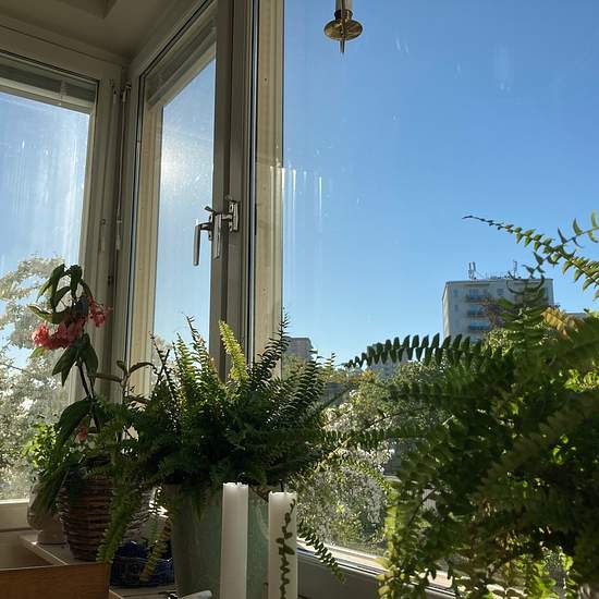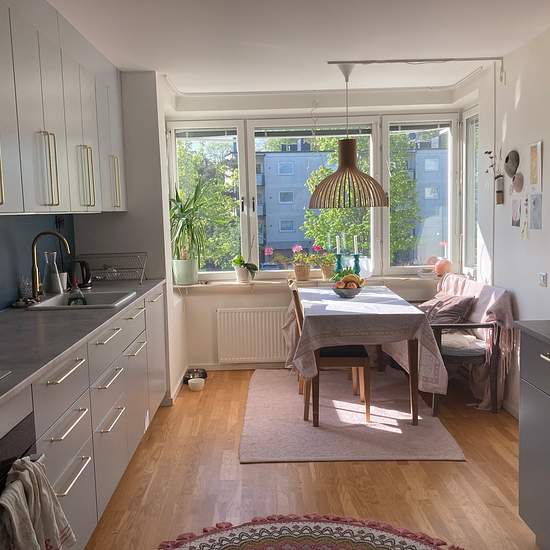 Lägenheten är ljus och rymlig med stora rum. Två rymliga sovrum. Ljust och vackert möblerat. Nära skogen, vattnet och ett naturreservat. Det är också nära centrum och tunnelbanan. Bra cykelvägar in till stan. Två cyklar ingår. Lägenheten kan bokas veckovis eller månadsvis och du är inneboende då. Serviceavgift för hyresgäst: 866