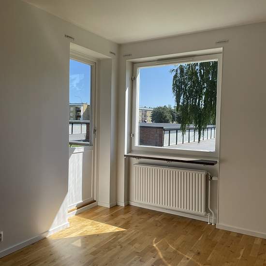 GARANT, 3:a med två balkonger Lägenheten ingår i ett erbjudande. Gäller ej befintlig hyresgäst som redan bor i Bo Bättre- eller Garantlägenhet. Erbjudandet innebär hyresfritt juni & december kommande tre år, eller reducerad hyra kommande tre år. Denna välplanerade lägenhet har en ljus och modern känsla med vitmålade väggar och parkettgolv i samtliga rum förutom i badrummet, där grå klinker och golvvärme ger en lyxig touch. Köket är utrustat med induktionshäll, varmluftsugn och diskmaskin. Båda sovrummen har fönstren i öst, varav ena sovrumm...