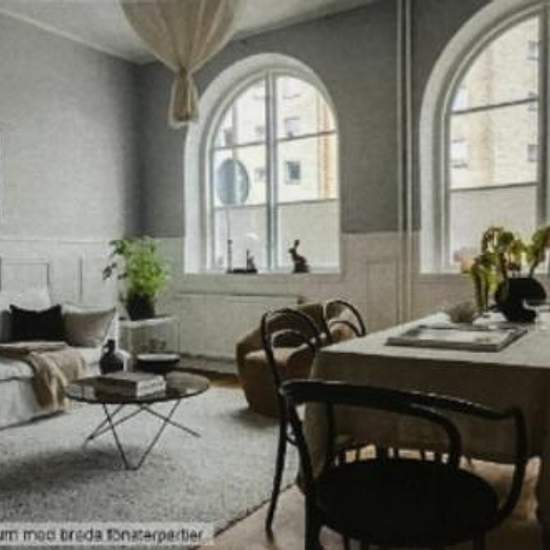 Mysig lägenhet med parkettgolv i hela lägenheten. och högt i tak med fantastiska,stora ,välvda fönster. Golvvärme i badrum. Bröstpanel i vardagsrum. Två stora rum och ett litet gästrum.