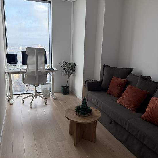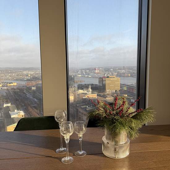 Modern trea i Karlatornet uthyres med fantastisk utsikt! Planlösning: Lägenheten är en rymlig trea med ett sovrum med dubbelsäng och ett kontor som också fungerar som gästrum med bäddsoffa. Köket är fullt utrustat och öppet mot matplatsen som rymmer 6 personer. Badrummet är stilrent och utrustat med tvättmaskin och torktumlare. Stora fönster ger ett härligt ljusinsläpp och panoramautsikt över Göteborg. Vad som ingår i hyran: Hyran inkluderar vatten, värme, internet och basutbud för TV. Tillgång till Karlatornets faciliteter som aktivitets...