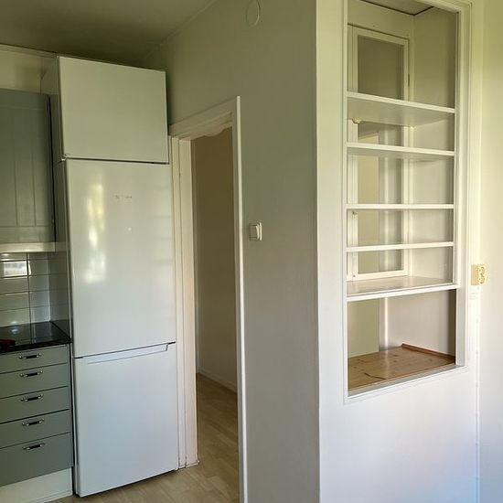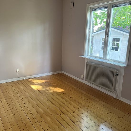 Lägenhet på första våning i tvåfamiljsvilla i Kärralund. 3 rum o kök med öppen spis och altan. 105 kvm Egen tvättmaskin i källare. Eget hyresavtal upprättas-ingen serviceavgift. Serviceavgift för hyresgäst: 833