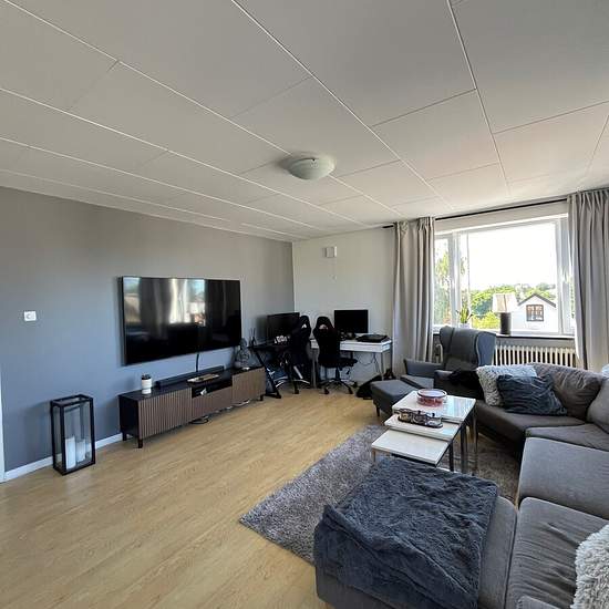 Gårdstångavägen 8E Harlösa 3ROK 107kvm 10950:-/mån varmhyra Fin lägenhet! Ingång på plan 1, där finns trappa ner till förråd i källaren samt trappa upp till ovanvåningen. Ovanvåning med två sovrum, vardagsrum och kök. parkettgolv, högt i tak. Fullt utrustat kök med diskmaskin. Badrum med tvätt/torkmaskin. Fiber finnes. Balkong i väster finnes. Parkering ingår. Tillgänglig från 1e mars, tidigare inflytt möjligt.