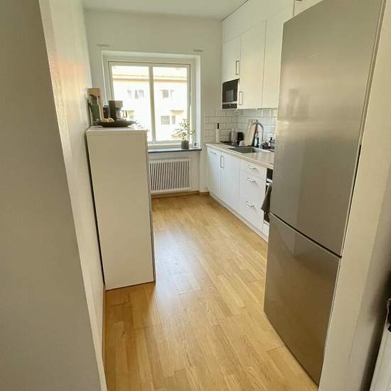 Renoverad lägenhet med genomgående parkettgolv och säkerhetsdörr. Köket är fullt utrustat med rostfria vitvaror, integrerad diskmaskin, mikrovågsugn, varmluftsugn och spishäll. Badrummet är helkaklat och utrustat med duschväggar, elektrisk och vattenburen handdukstork, komfortgolvvärme samt både tvättmaskin och torktumlare. Lägenheten har en balkong som ger extra utrymme för avkoppling. Egen tvättmaskin och torktumlare finns i bostaden, men även en gemensam tvättstuga i fastigheten. Källarförråd ingår. Bostaden ligger nära ett grönområde med...