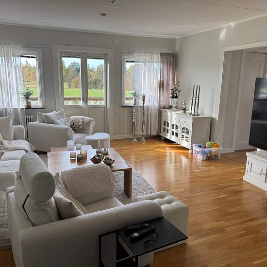 I Hudene 5 km utanför Herrljunga blir en stor 3:a ledig från 1 mars. Lägenheten är en av två lägenheter i huset varav den här ligger på plan 2. Lägenheten har balkong, tvättmaskin, torktumlare, diskmaskin. Det finns ett stort skafferi i anslutning till köket. Det finns även två stora kattvindar som kan nyttjas som exempelvis kontor. Stor tomt utanför huset finns att nyttja. Entrén ligger på bottenplan där en trappa tar dig upp till lägenheten och en trappa tar dig ned till en stor källare samt garage (räknas inte in i boarean). Fiber är in...