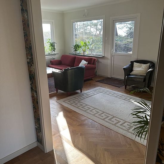 Lägenhet med utgång från vardagsrum till husets uteplats i söderläge utan insyn. Värme, el och vatten ingår i hyran samt p-plats för bil. Ladd box finns. Tvättmaskin och torktumlare i tvättstugan. Ca 5 minuter gångväg till busshållplats. Lägenhet uthyres till företag under perioder om 4-20 veckor Serviceavgift för hyresgäst: 892