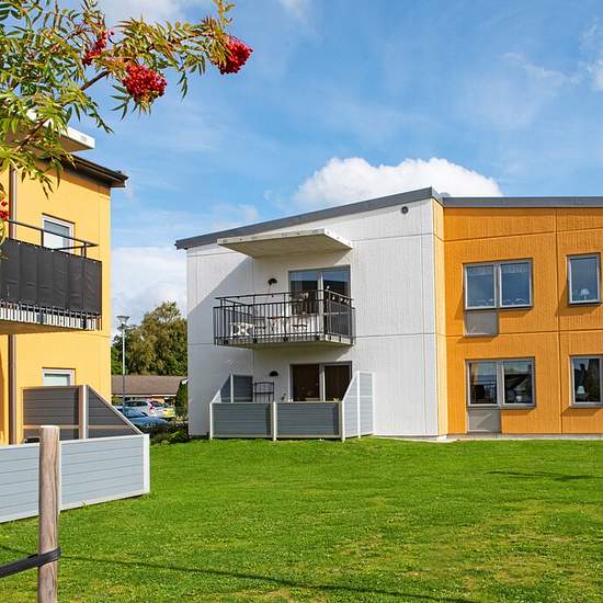 Bostad Trivsam och modern lägenhet med tre rum och kök på andra våningen med balkong. Helkaklat badrum med tvättmaskin och torktumlare som standard. Köket är öppet mot matplats och vardagsrum. Det finns ett större sovrum med skjutdörrsgarderober. Det finns också ett mindre rum som kan användas som sovrum eller kontor. Hela lägenheten har fint ljusinsläpp och vitmålade väggar. Ingen fysisk visning. Fotona kommer från grannlägenheten. Den här lägenheten har samma planlösning, men i spegelvänd version. Område Området innehåller 16 l...