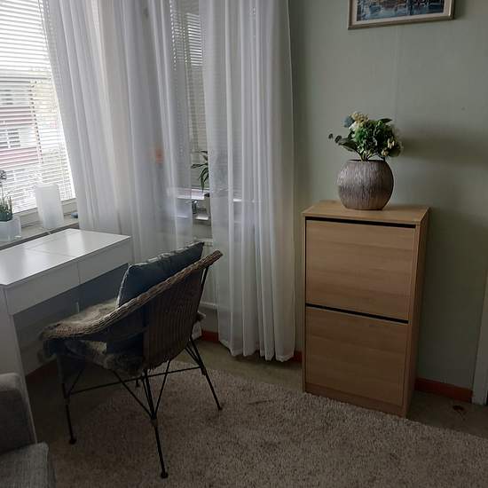 Hej! Rummet som jag vill hyra ut är fresch, ljus och helt meblerat. Tillgång till köket och badrummet är separat. Det fins separat toaleten och stor köksvrå. I hyran ingår el och internet. Hela byggnaden ligger i en grön familjevänlig, med många lekplatser område, nära skogen och sjö. Det tar ca 7 minuter till pendeltåg station. Serviceavgift för hyresgäst: 261