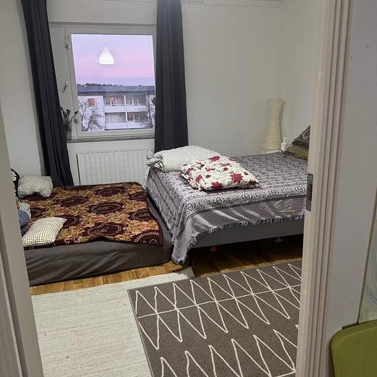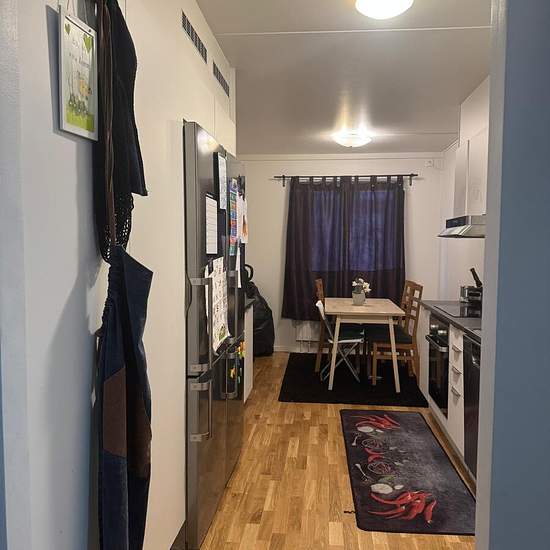 The building has floor 0, 1 och 2. The apartment is at floor 2. The apartment has been newly renovated. New fridge, freezer, microwave, oven all new. Newly Renovated washroom, new washing machine, dryer and Firealarm. The apartment is furnished. With Double bed, a single bed, sofa, sofa bed. TV and google home. The tenant should arrange for internet as it is not available at the moment. Serviceavgift för hyresgäst: 687