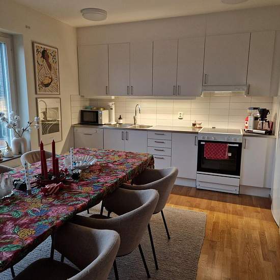 Bostad Ljus och trevlig lägenhet på översta våningen med balkong mot innergård. Bra förvaringsmöjligheter samt förråd i lägenheten. De stora fönsterna ger härligt ljus i hela lägenheten och de fina materialvalen gör att det känns lite lyxigt att komma hem. Det finns möjlighet att överta de takhängda gardinstängerna. Lägenheten har öppen planlösning och fina materialval. Bredare fönsterkarmar och gott om eluttag. Diskmaskin ingår i hyran. Det finns 3st tvättstugor i området och man kan boka i vilken man vill. En kort promenad bort lig...