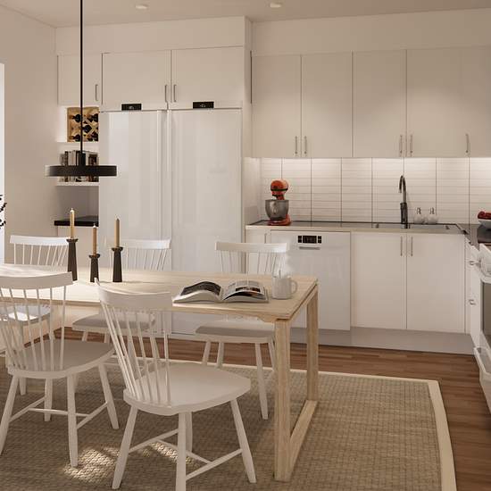 Välkommen till denna moderna och stilrena lägenhet med en perfekt balans mellan funktion och design! Här erbjuds ett ljust och luftigt boende med en öppen planlösning som skapar en härlig rymd. De stora fönstren släpper in ett fantastiskt naturligt ljus och ger en fin kontakt med omgivningen. Köket är funktionellt och fullt utrustat med energieffektiva vitvaror som både sparar på energin och håller driftskostnaderna låga. Det finns möjlighet att installera diskmaskin, Blandaren byts då ut till en som är anpassad för bänkdiskmaskin utan kos...