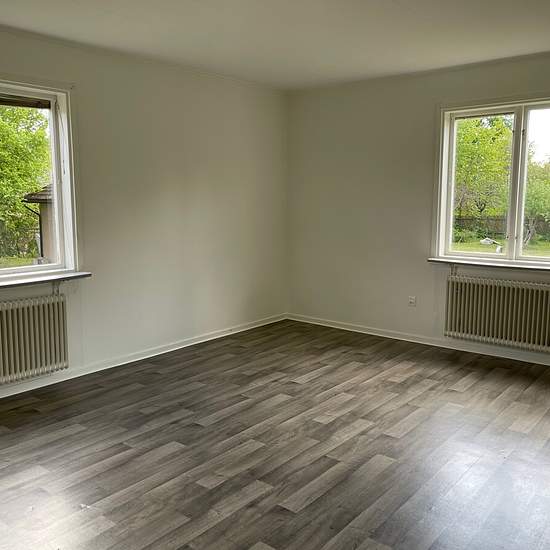 Lägenhet med genomgående plastmattor och fräscha ljusa väggar. Kök där det får plats med ett normalt stort köksbord. Kaklat badrum med duschdörrar. Bra med förvaring både i lägenheten och källaren. Den här lägenheten kan man sätta upp en vägg i ett av sovrummen, så att det blir en 4-rumslägenhet. Något vi kan erbjuda om intresse finnes.