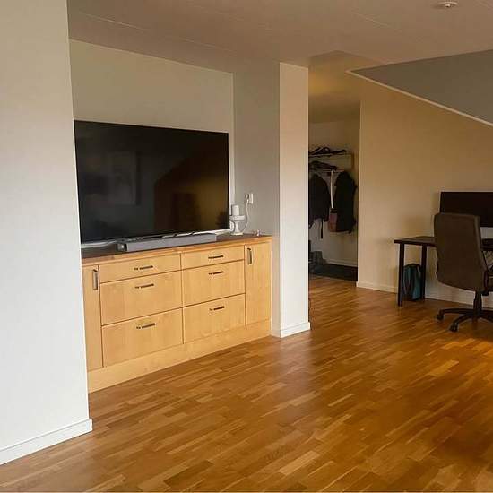 Trevlig ljus lägenhet 3 rum och kök.Öppen planlösning, nyrenoverad badrum med tvättmaskin finns också bra tvättstuga i källare. Balkong. En parkeringsplats på gården. Tillgång till trädgård. Ett källarförråd. Finns möjlighet att hyra mer förråd.