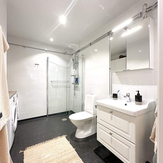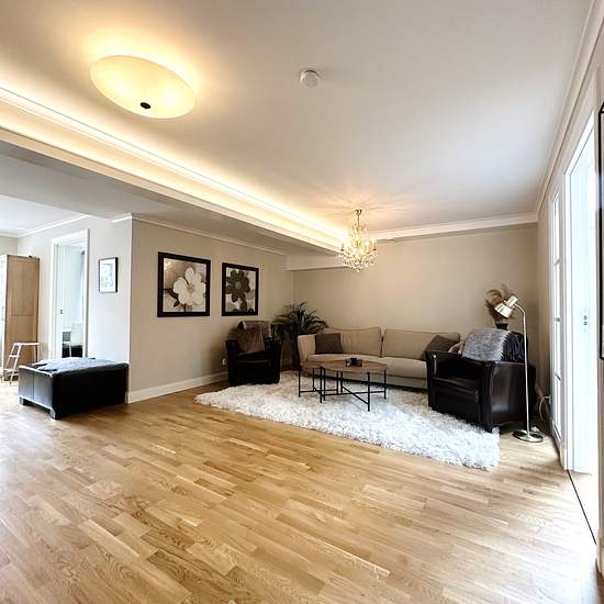 Välkommen till ett hem som kombinerar modern komfort med genomtänkt design och ett oslagbart läge. Denna nyrenoverade och mycket charmiga lägenhet om 92 kvm erbjuder ett bekvämt boende mitt i centrum – perfekt för dig som vill ha närhet till allt. Generös och välplanerad bostad om 92 kvm Nyrenoverad med påkostade materialval Kök Nytt, stilrent Vedumkök Vitrinskåp, vinställ och diskmaskin Fullhöjd kyl och frys Naturlig plats för matbord med 6–8 sittplatser mellan kök och vardagsrum Rymligt och ljust Stilfull LED-list som löper genom rummet oc...