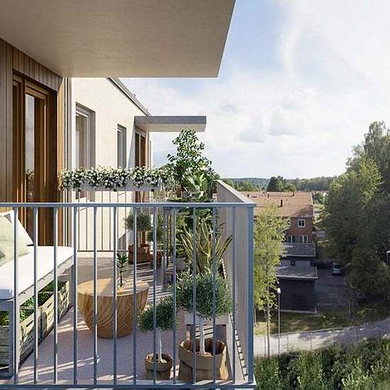 Trevlig trea med förråd på vinden. Lägenheten har två balkonger där entrébalkongen har plats för ett caféset. Golven består av mattlackad ekparkett och entrén har klinkergolv. I hallen finns det en smidig skjutdörrsgarderob med gott om förvaring. Det helkaklade badrummet har klinker på golvet och är utrustat med tvättmaskin och torktumlare. Här finns två rymliga sovrum där det största har en praktisk klädkammare. Köket är välutrustat med hällspis, inbyggnadsugn, mikro samt diskmaskin och här finns ett fönster vid diskbänken för extra ljusins...