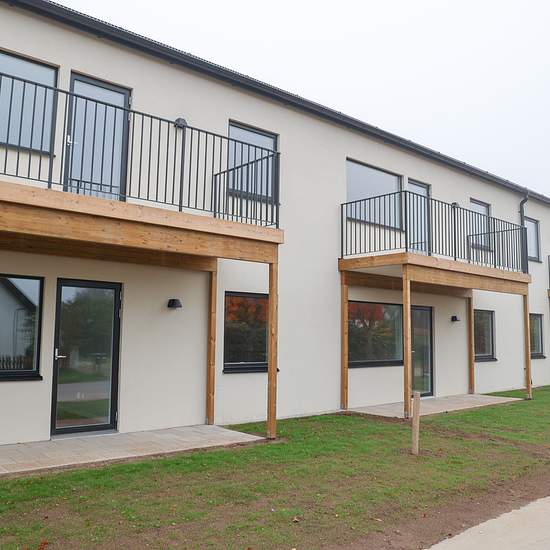 Bostad Nu presenterar vi 13 bekväma nyproducerade lägenheter mitt i en charmig skånsk by som har både livsmedelsbutik, skolor och vårdcentral. Här kan du leva ett lugnt och skönt liv, nära naturen och det öppna landskapet, men ändå med närhet till större orter och städer. Huset med putsad fasad i rött och vitt är i två våningar och varje lägenhet har uteplats eller balkong i sydvästläge som vetter mot en lugn villagata. Lägenheterna Lägenheterna har öppen planlösning med ljusa väggar och förutom klinkergolv i badrum och hall är det 3-sta...
