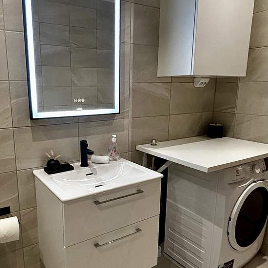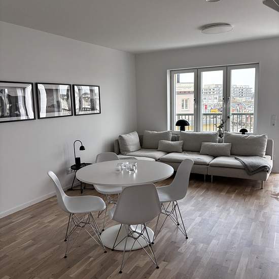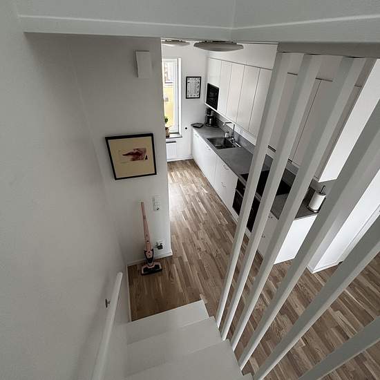 Nyproducerad ljus lägenhet i två plan med stor takterass nära hamn, strand & centrum. Hela lägenheten är ljus och med gedigna materialval. Fullt utrustat kök & badrum med kombinerad tvättmaskin/torktumlare. Sovrum med Hästens dubbelsäng, garderob och sängbord. Vardagsrum och kök i öppen planlösning med matbord och soffgrupp. Övervåning med bäddsoffa för två personer och skrivbord. Utgång till terrass på 27 kvadratmeter. 1 km till Lomma Station med tåg & bussar till bl a Lund, Malmö & Köpenhamn. Följande ingår inte i hyran: - Parkerin...