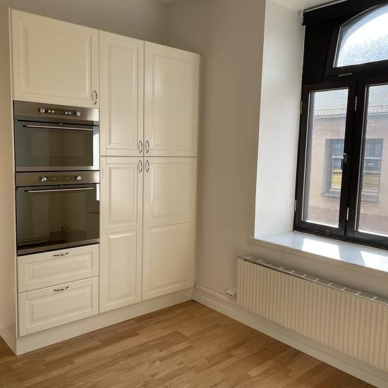 En mycket fräsch och fin lägenhet. Köket är nyligen renoverat med granitbänkskivor, vita köksluckor, inbyggnadsugn, inbyggnadsmikro, keramikhäll samt diskmaskin. Stora härliga rum med vita väggar och parkettgolv. Helkaklat badrum med badkar.