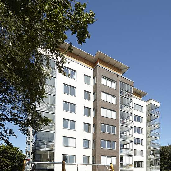 Välkommen till en 55 + lägenhet. 3 rok med inglasad balkong. Lägenheten har en modern öppen planlösning mellan kök och vardagsrum. Kök: Modern köksinredning i ljus ask laminat med raka luckor i ljus ask laminat med rostfria maskiner. Integrerad diskmaskin. Grått väggkakel över diskbänk och bänkskiva. Ljusa väggar och golv av mörkgrå klinker. Badrum och tvätt: Helkaklat med mörkgrå klinker på golv och vit kakel på vägg med ett vertikalt mönster av mörkgrå klinker bakom wc-stol. Rökfärgade duschglasdörrar, handdukstork. Tvättavdelning med ...