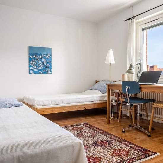 Hörnlägenhet högst upp på 4e våningen med fri utsikt i i tre väderstreck belägen på Smedstugugatan 15b. Från vardagsrummet kommer man ut på balkongen i västerläge. Utöver badrum med toalett i mitten av lägenheten finns det en extra toalett vid det ena sovrummet. Huset saknar hiss, men trapporna ger dig en daglig dos gratis motion. Närhet till livsmedelsaffär, restaurang, skola och bra kommunikationer in till centrum på endast några minuter. Jag och min fru, Louise, är båda pensionärer och bor numera i Hälsingland. Jag jobbade på SMHI och...