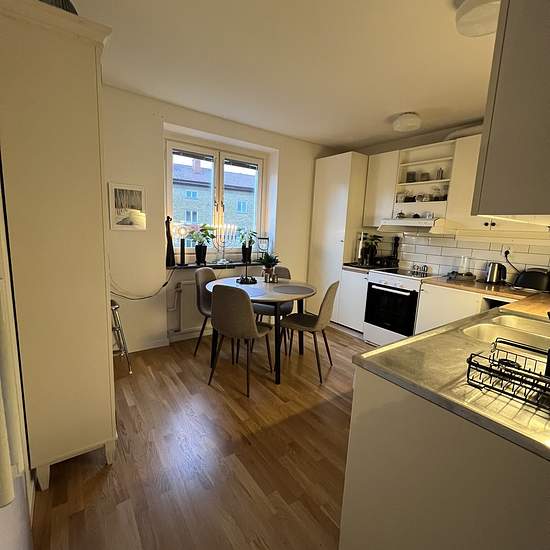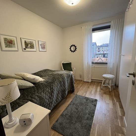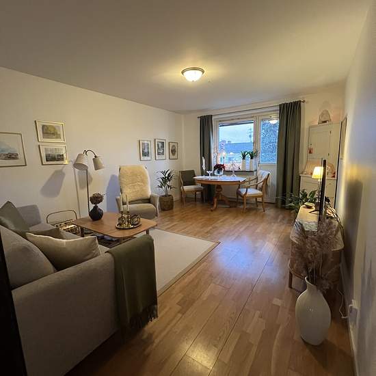 Genomgående ljus fräsch lägenhet med balkong och fina parkettgolv. Nyrenoverat badrum 2021.