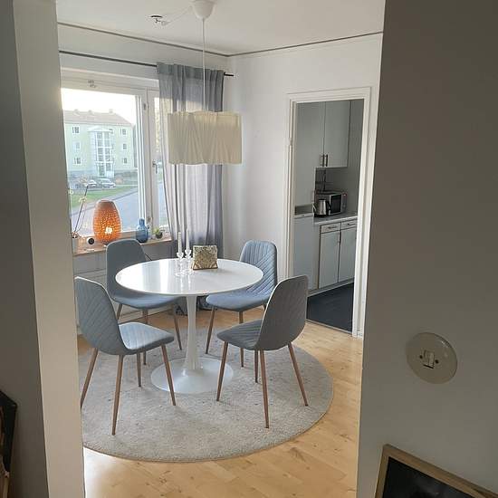 Fräsch lägenhet i ett lugnt område, med närhet till centrum, förskola, högstadieskola samt gymnasium. Hela lägenheten har fräscha golv, där kök och badrum har klinkers och resterande del av lägenhet har parkettgolv. Badrummet är renoverat 2022. Från vardagsrummet har man ett stort inglasat balkong där fräscha utemöbler kan lämnas kvar till hyresgästens användning, så länge man bor kvar. I lägenheten ingår bredband, tv med stort utbud av tv-kanaler, samt parkeringsplats. Föreningen har en välskött tvättstuga, med digital tidsbokning. Tvättst...