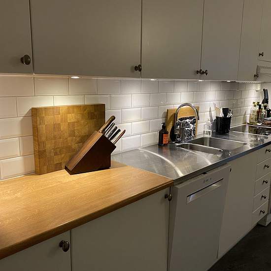 Fin lägenhet med 3 rum och kök samt balkong. Vita väggar. Parkett i sovrum och vardagsrum. Helkaklat badrum. Vita luckor i köket. Induktionshäll och varmluftsugn, diskmaskin. Förberett för tvättmaskin i badrummet. 2 st fina tvättstugor i källaren, cykelrum och förråd.