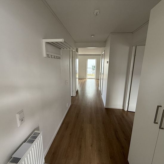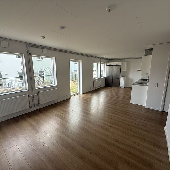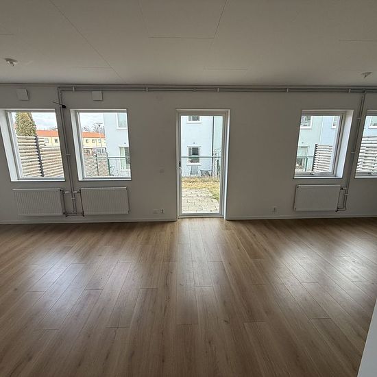 Modern trerumslägenhet med radhuskänsla, uteplats och egen parkering Välkommen till denna mycket fräscha och välplanerade bostad från 2022 med modern standard, fina materialval och en trivsam radhuskänsla. Lägenheten erbjuder ett bekvämt boende på markplan med öppen planlösning, egen uteplats och bilplats som ingår i hyran. Hallen har ljusgrått klinkergolv, vitmålade väggar, platsbyggd garderob och plats för avhängning. Köket är modernt och stilrent med vit köksinredning från Ballingslöv, grå bänkskiva i sten samt utrustning som diskmaskin...