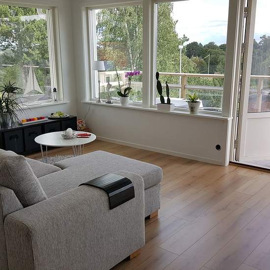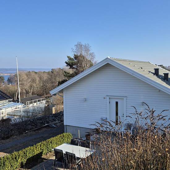 Centralt belägen lägenhet m havsutsikt. Byggd 2016 som fristående hus i tryggt naturnära villaområde med egen liten trädgård, balkong och stenlagd uteplats. Öppen planlösning kök/vardagsrum m utgång t balkong Gångavstånd (600 m) till badplats, båtbryggor och härliga promenadstigar längs fjorden 3 min gångväg till busshållplats, pizzeria och postombud/servicebutik. 2 km till affärscentrum med restauranger, vårdcentral, apotek Parkering , wifi, el och vatten ingår i hyran. Möblerad eller ej kan diskuteras. Rökning eller husdjur ej tillåtet...