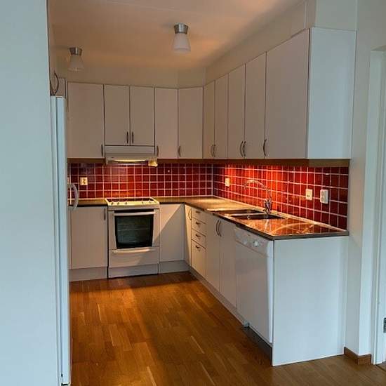 Ljus och fin lägenhet med 3 rum och kök. Stor balkong med eftermiddagssol. Diskmaskin, tvättmaskin och torktumlare. Parkeringsmöjlighet finns i garaget under huset.