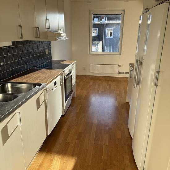 Lägenhet 3 rum ock kök (63,5Kvm) på väster. 3 rum och kök uthyres på grundläggaregatan 7. Lägenheten är ljus och välplanerad. Den ligger på andra våningen med balkong. Lägenheten har genomgående ekparkettgolv, vitmålade väggar och kaklat badrum med dusch. Gemensam tvättstuga. Kök -Fint kök med god maskinell komfort. Vita skåpluckor, laminatbänkskiva och mörkt kakel ovan arbetsytorna. Den maskinella utrustningen består av: spis/ugn, kyl/frys och diskmaskin. Fiber med Stadsnät indraget, hyresgäst tecknar eget abonnemang. P-plats Det...