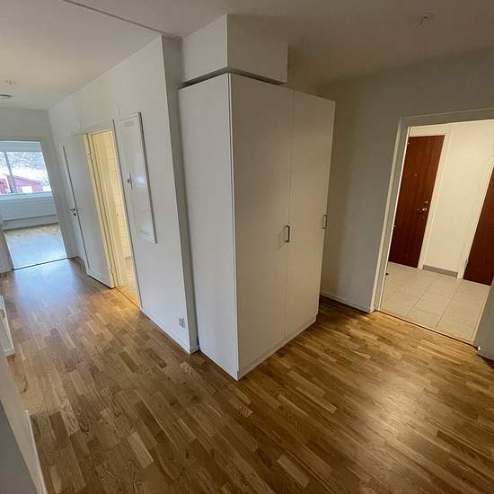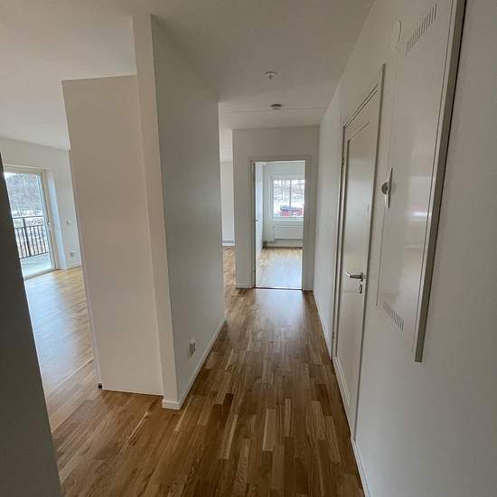 Modern lägenhet med balkong. Välplanerad och ljus lägenhet med vitmålade väggar och parkettgolv. Kök med vita köksluckor, vitt kakel och diskmaskin. Badrum med grått klinkergolv med golvvärme, vitt kakel på väggar samt spotlights i taket. Dusch med dörrar, handdukstork och kombinerad tvättmaskin/torktumlare. Kommod under handfat samt spegelskåp med inbyggd belysning. Till lägenheten hör ett förråd beläget i källarplan på hus nr 9. Det finns även cykelskjul samt ett förråd med eluttag för rullstol och barnvagn i separat byggnad på utsidan. In...