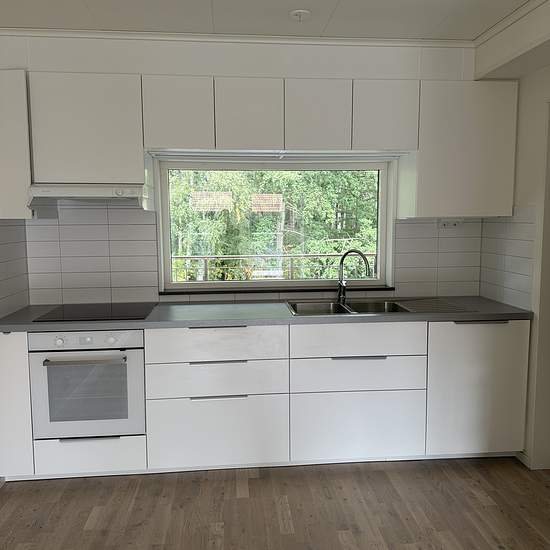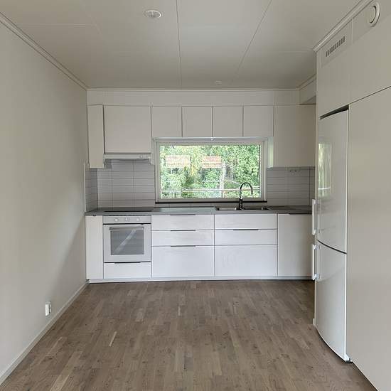 Om Bostaden Fastigheten är byggd 2021, så ni kommer inte vara den första hyresgästen som flyttar in i den här lägenheten. Bostaden har genomgående mattlackad ljus ekparkett, vitmålade väggar och fönsterbänkar i granit. Köket har vita luckor, laminatbänkskiva och stänkskydd i vitt kakel är utrustat med induktionshäll, inbyggnadsspis, integrerad diskmaskin, kylskåp och frys. Badrummets väggar är helkaklade i vitt med ett grått laminatgolv och utrustat med tvättmaskin och torktumlare, handdukstork samt förvaringsmöjlighet. I fastigheten ä...