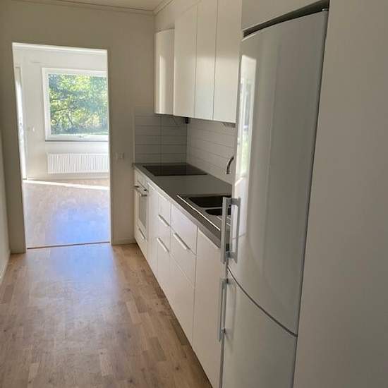 Om Bostaden Fastigheten är byggd 2021. Bostaden har genomgående mattlackad ljus ekparkett, vitmålade väggar och fönsterbänkar i granit. Köket har vita luckor, laminatbänkskiva och stänkskydd i vitt kakel är utrustat med induktionshäll, inbyggnadsspis, integrerad diskmaskin, kylskåp och frys. Badrummets väggar är helkaklade i vitt med ett grått laminatgolv och utrustat med tvättmaskin och torktumlare, handdukstork samt förvaringsmöjlighet. I fastigheten är det rökfri boendemiljö. Det betyder att hyresgästen eller besökare inte får röka i...