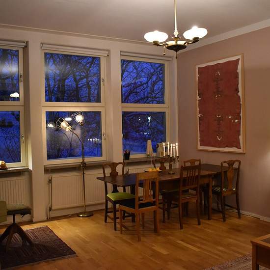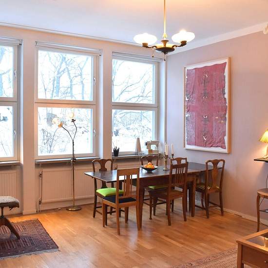Stor, vacker konstnärlig lägenhet. 3 meter i tak och stora vackra fönster. Lägenheten består av 2 sovrum, ett stort vardagsrum och ett stort kök. I vardagsrummet finns ett piano, en projektor där du kan titta på film. Jag hyr lägenheten pågrund av att reser bort i 2 månader. Serviceavgift för hyresgäst: 624