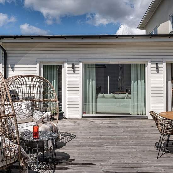 Möjligt att hyra depositionsfritt genom Samtrygg. Månadskostnad: 13225 kr. ________________________________________________________________ Snabbast bokar du visning genom att följa denna länk till Samtrygg: Här hittar du även fler bilder och mer info. ________________________________________________________________ Nybyggd, stilren och ljus enplanslägenhet med stor uteplats. Två sovrum (ett med skjutdörr). Öppen planlösning kök/vardagsrum. Påkostat helkaklat badrum med både tvättmaskin och torktumlare. Gott om förvaring i sovrum samt...