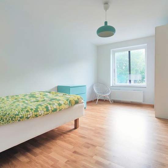 A very nice apartment in good condition, which I rent out while I'm working in Norway. To begin with for 6 months, but it might get prolonged. A large living room with an open floor plan and a nice kitchen. Two nice bedrooms and a bathroom , where it's possible to have your own washing machine. (If you don't want to use the main washing facility with several washing maschines and dry tumblers in the house next door, which you easily book via an app. ) The apartment is on the second floor with a nice balcony and since there is no building opp...