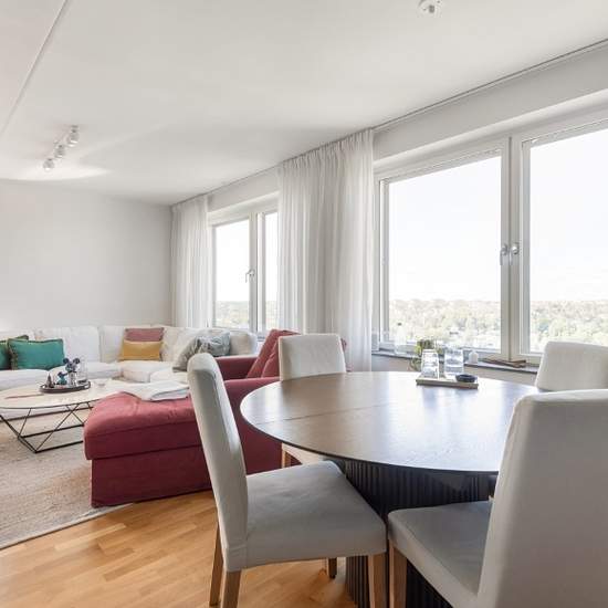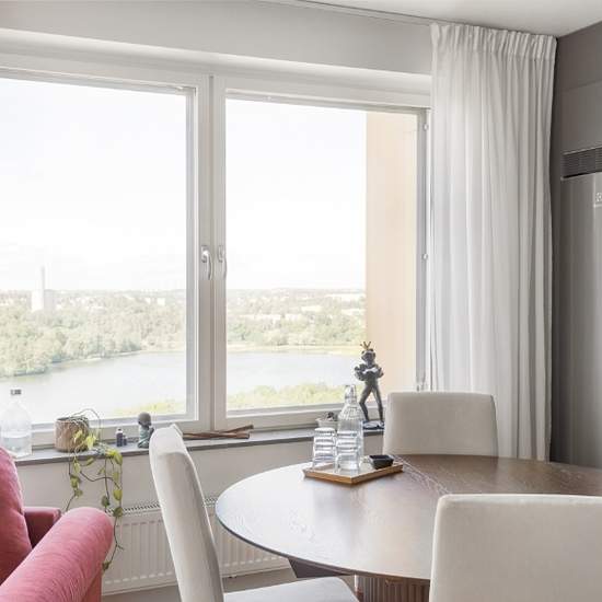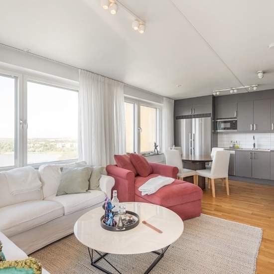 Modern nyproducerad 3:a på 20:e våningen med sjöutsikt – intill Westfield Mall of Scandinavia, Solna ( For English See Below) Välplanerad och stilren lägenhet om 70 kvm, byggd 2019, belägen på 20:e våningen med fantastisk utsikt över sjön. Dessutom finns en inglasad balkong på 9 kvm som förlänger säsongen och ger extra utrymme. Lägenheten har en öppen planlösning mellan kök och vardagsrum, två sovrum, samt ett rymligt walk-in-closet. Badrummet är helkaklat och utrustat med takdusch, tvättmaskin och torktumlare. Kvalitativa tillval såso...