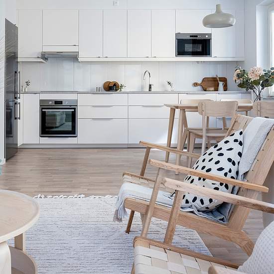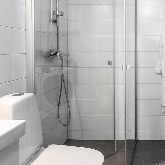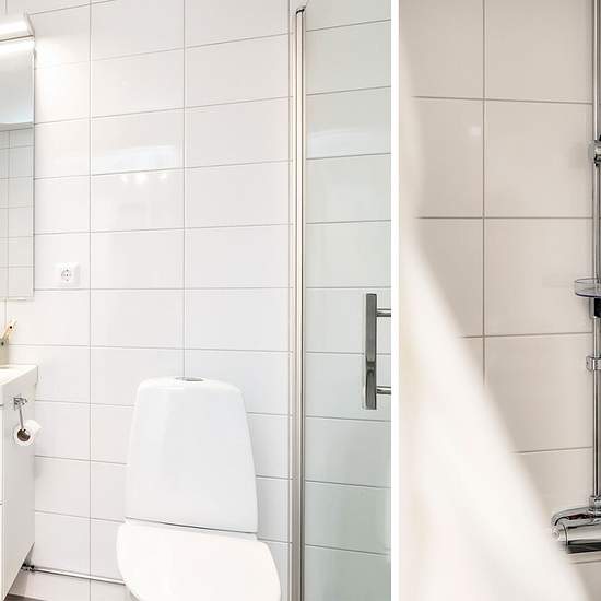 Här får du en trea med dubbla balkonger. Planlösningen är öppen mellan kök och vardagsrum – här finns plats för allt från matbord och soffhörna till familj och vänner. Du får även två bra sovrum, där det större rymmer både dubbelsäng och förvaring. Vinkelköket från IKEA har vita släta köksluckor med vitt stående kakel och betongmönstrad bänkskiva. Här finns allt du behöver för en praktisk vardag – såsom kombinerad kyl/frys, integrerad diskmaskin, rostfri varmluftsugn, induktionshäll och det är förberett för mikrovågsugn. I det helkaklad...