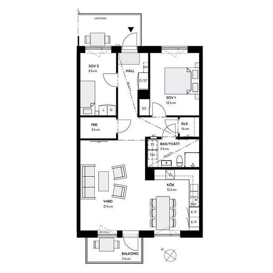 Här får du en trea med balkong i sydvästläge. Planlösningen är öppen mellan kök och vardagsrum – här finns plats för allt från matbord och soffhörna till familj och vänner. Du får även två bra sovrum, där det större rymmer både dubbelsäng och förvaring. Vinkelköket från IKEA har vita släta köksluckor med vitt stående kakel och betongmönstrad bänkskiva. Här finns allt du behöver för en praktisk vardag – såsom kombinerad kyl/frys, integrerad diskmaskin, rostfri varmluftsugn, induktionshäll och det är förberett för mikrovågsugn. I det helka...