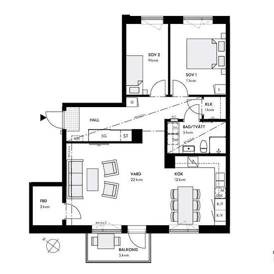 Här får du en trea med balkong i sydvästläge. Planlösningen är öppen mellan kök och vardagsrum – här finns plats för allt från matbord och soffhörna till familj och vänner. Du får även två bra sovrum, där det större rymmer både dubbelsäng och förvaring. Vinkelköket från IKEA har vita släta köksluckor med vitt stående kakel och betongmönstrad bänkskiva. Här finns allt du behöver för en praktisk vardag – såsom kombinerad kyl/frys, integrerad diskmaskin, rostfri varmluftsugn, induktionshäll och det är förberett för mikrovågsugn. I det helka...