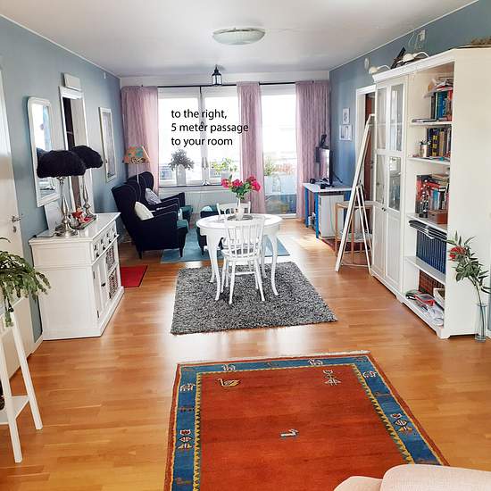 DELAD TERRASSVÅNING PÅ SÖDERMALM Ett möblerat rum (se bilder nr. 8 -12) + alla gemensamma ytor hyrs ut från den 1 september 2026. till en lugn, skötsam och renlig icke-rökare med ordnad ekonomi. Måste styrkas. Endast kvinnlig hyresgäst kan hyra. Och endast EN (1) person. Detta är ett boende i centrala Stockholm med utmärkta kommunikationer i alla riktningar (tunnelbana, buss, pendeltåg). Våningen är på totalt 5 rum och kök fördelade på 118 m². Din hyra uppgår till 10 300 kr, men då har du även tillgång till gemensamma och möblerade boy...