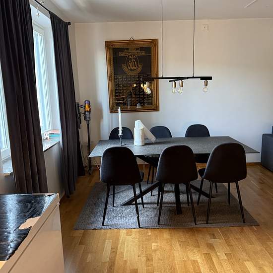 Hej hyr ut min 3:a nu pga jobb i annan stad. Lägenheten är möblerad, det stora sovrummet, dubbelsäng byrån med tre lådor på vardera sida och tre garderober, de andra sovrummet är låst då jag har mina personliga saker och kläder i. Vardagsrummet öppen planlösning mot köket. Stor matbord för sex personer, bäddsoffa tv och Apple TV lägenheten har en extra frys då frysen är liten. Även diskmaskin, hallen har förvaring för för skor sex lådor, toaletten har två badrumsskåp ett stort och ett litet. Hyr ut lägenheten till att börja med sex månader ä...