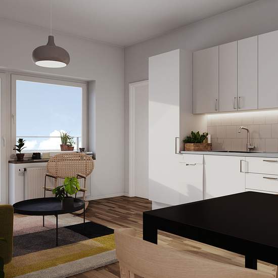 Fastigheten är byggd 2023 och det har bott andra hyresgäster i denna lägenhet. Bostaden har ljusa materialval, vitmålade väggar och parkettgolv av ek. Köket har vit skåpinredning med kakel som stänkskydd och laminatbänkskiva. Köket är utrustat med spis, ugn och kyl/frys, och diskmaskin. Badrummet är helkaklat med klinkergolv och förberett för anslutning av tvätt-/torkmaskin. Observera att bilderna som visas i annonsen är exempelbilder från en bostad med samma standard. Detta för att visa vilket materialval som används. Avvikelser kan för...