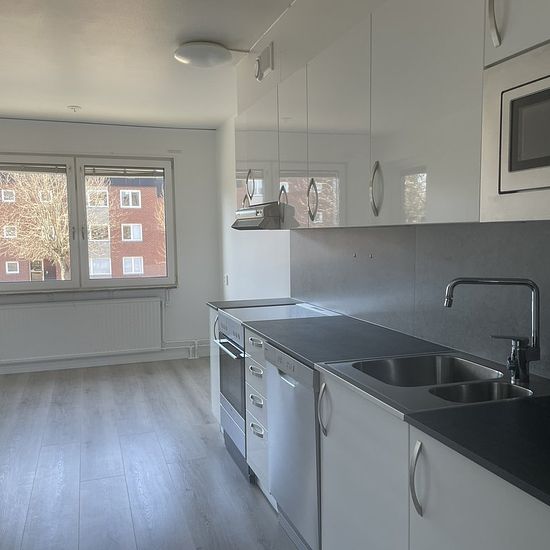 Renoverad & fräsch lägenhet i lugnt område – perfekt för dig som söker ett bekvämt boende nära allt! Just nu uthyres denna lägenhet med en hyresrabatt på 1700 kr/månad i 5 år. Ordinarie hyra är 9838 kr/månad vilket betyder att du endast betalar 8138 kr/månad nu. Välkommen till denna ljusa och välplanerade lägenhet en trappa upp. Lägenheten erbjuder en fräsch känsla med moderna ytskikt. Här bor du bekvämt med egen tvättmaskin och torktumlare och bra förvaring i klädkammaren. Helkaklat badrum med golvvärme. Köket är välutrustat med diskmaskin...