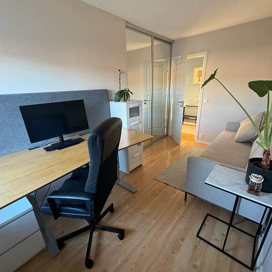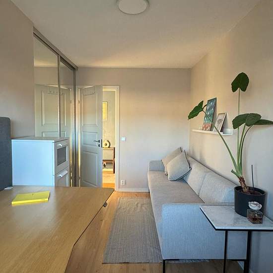 Lägenhet på Torslanda Torg. 72 kvm. Fullt möblerad med hög kvalitet och fina designmöbler. Stort vardagsrum med TV och soffa samt stort kök. Inglasad balkong med bord, stolar och soffa, 2 sovrum: ett stort och ett litet med en bäddsoffa och ett utrustat lyftbord för "hemmakontor". Alla köksmaskiner, diskmaskin, tvättmaskin mm. I byggnaden finns tvättstuga, cykelrum och gemensam bastu. Området är lugnt och kvarteret är trevligt med mycket natur runtom. Lägenheten ligger på översta våningen, mycket ljus, dubbel exponering, sol på morgonen i so...