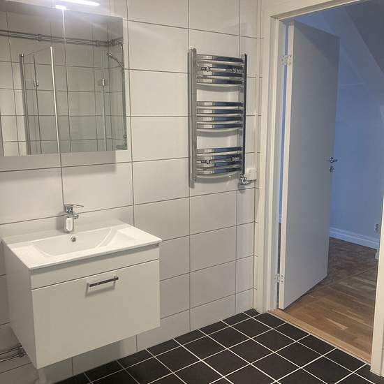 Mysig större lägenhet om 3 rum och kök på hela 102 kvadratmeter, belägen två trappor upp på Lagerbergsgatan 41 i Uddevalla. Lägenheten är vitmålad och har parkettgolv i hall och vardagsrum, samt i ett av de två sovrummen. I hallen finns tre garderober. Köket är smart planerat med plats för ett större matbord med flera sittplatser. Det är dessutom välutrustat med en hel kyl, hel frys och diskmaskin. Badrummet är nyligen totalrenoverat och inrett med stilfullt vitt kakel och mörkgrått klinkergolv samt duschdörrar i glas. Därtill finns golvvär...