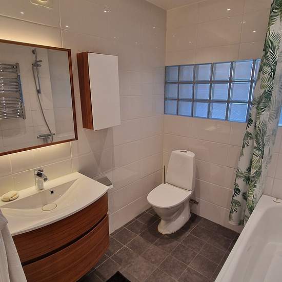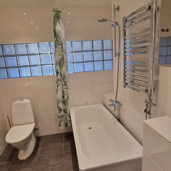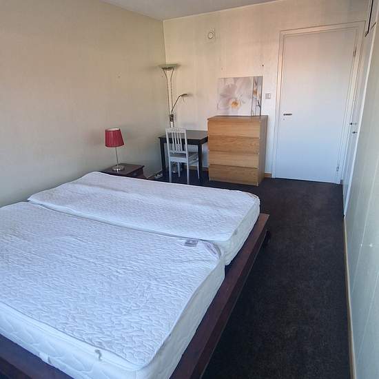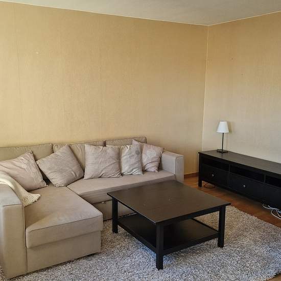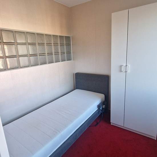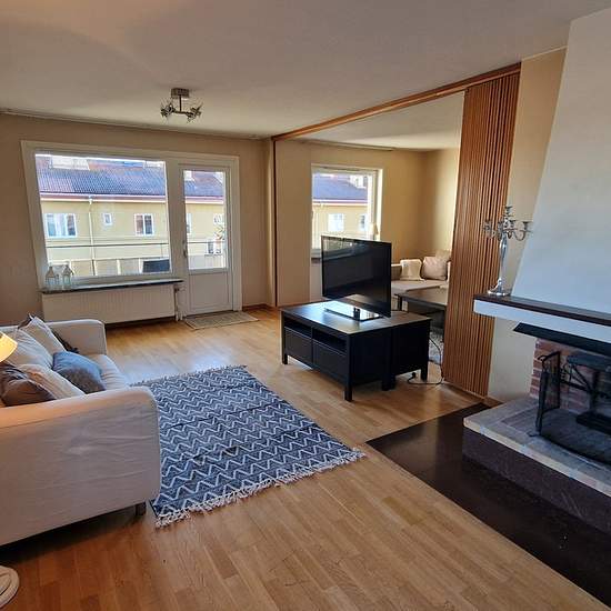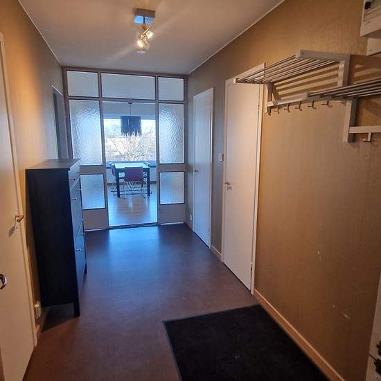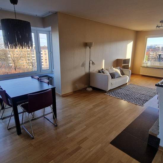 Lägenheten är ledig omgående och minst t o m juli, eventuellt längre. Den har uthyrningsdel och separata ingångar och du får hyra stora delen (röd markering på bild av planlösning) så det blir då enligt reglerna ett inneboendekontrakt. 3-4 rok ( ca 90 kvm) med egen ingång, badrum med badkar, kök, balkong och förråd. Ligger på femte våningen (högst upp) i hyreshus på lugn gata i främre Luthagen med utsikt över Fyrisån. Vardagsrummet kan delas av med skjutvägg till ett tredje sovrum (bäddsoffa finns i den delen). Lägenheten är inte helt städad...